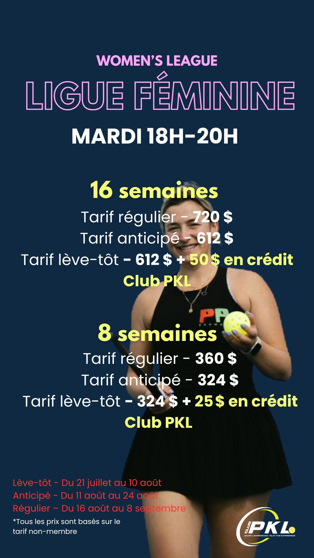 Tournois professionnels • Divisions selon le niveau d'habileté • Saisons de 16 semaines